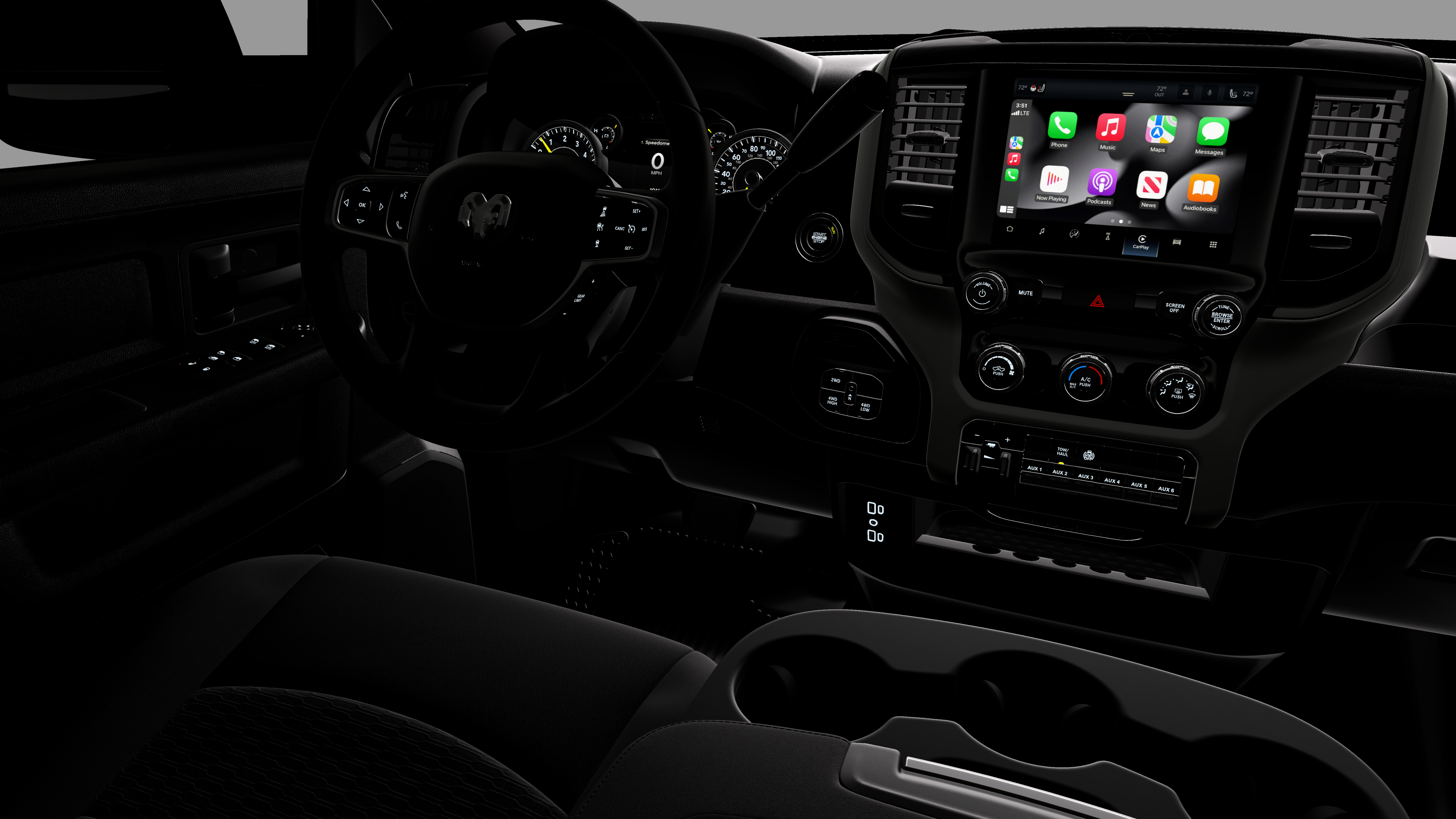 - Radio w/Seek-Scan, Clock, Speed Compensated Volume Control, Aux Audio Input Jack, Voice Activation, Radio Data System and Uconnect External Memory Control